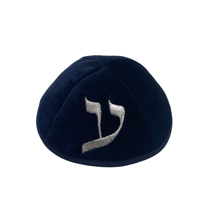 Kippa velours enfant avec lettre et prénom BINYAMIN brodés.