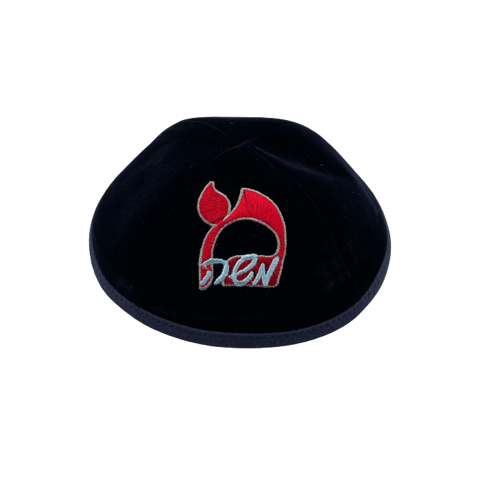 Kippa velours enfant avec lettre et prénom LEVI ITSHAK brodés.