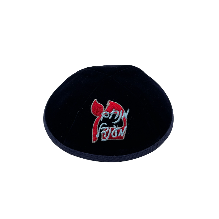 Kippa velours enfant avec lettre et prénom ISRAEL ARIE LEIB brodés.
