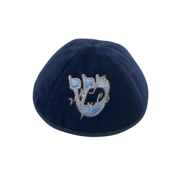 Kippa velours enfant avec lettre et prénom YOSSEF ITSHAK brodés.
