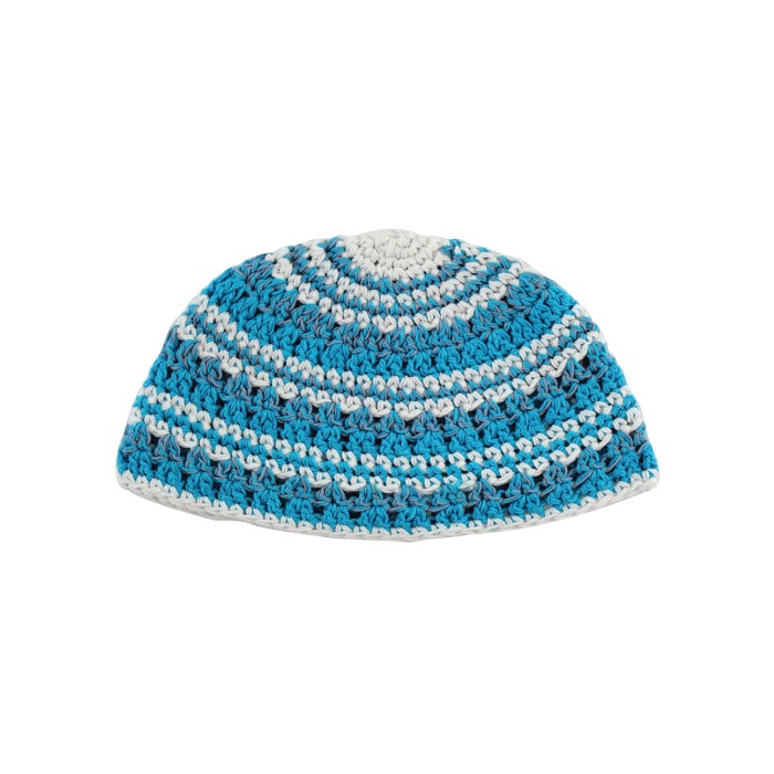 Kippa lin de haute qualité, coloris bleu et liserai ciel, fabrique IKIPPAH.