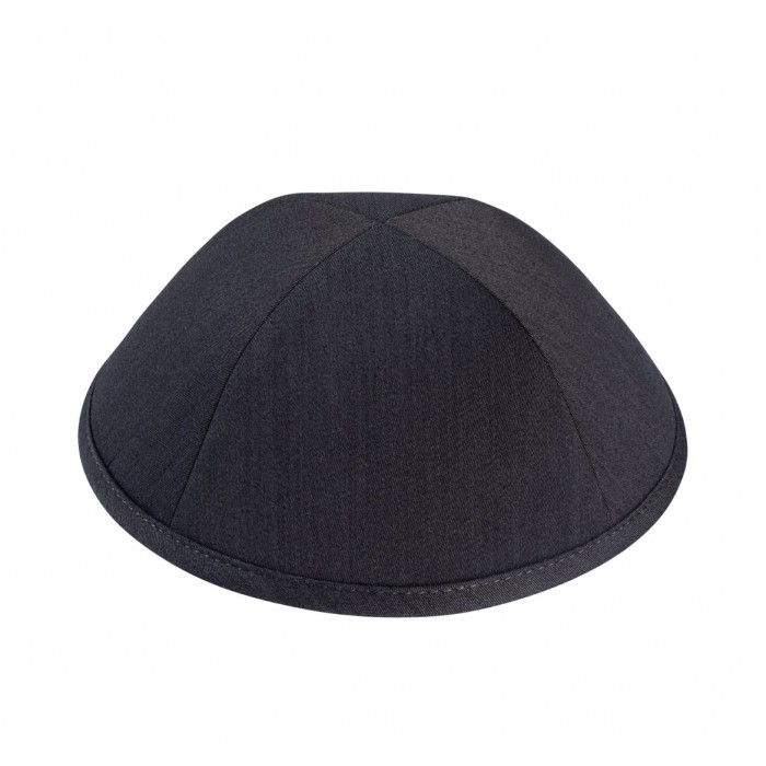 Kippa de jute de haute qualité, coloris noir et bord noir en cuir, fabrique IKIPPAH.