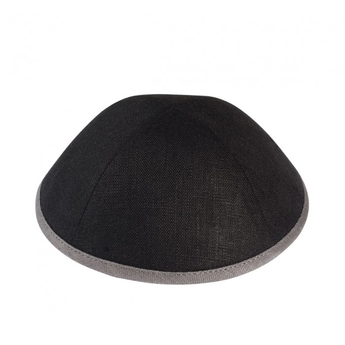 Kippa lin de haute qualité, coloris bleu et liserai ciel, fabrique IKIPPAH.