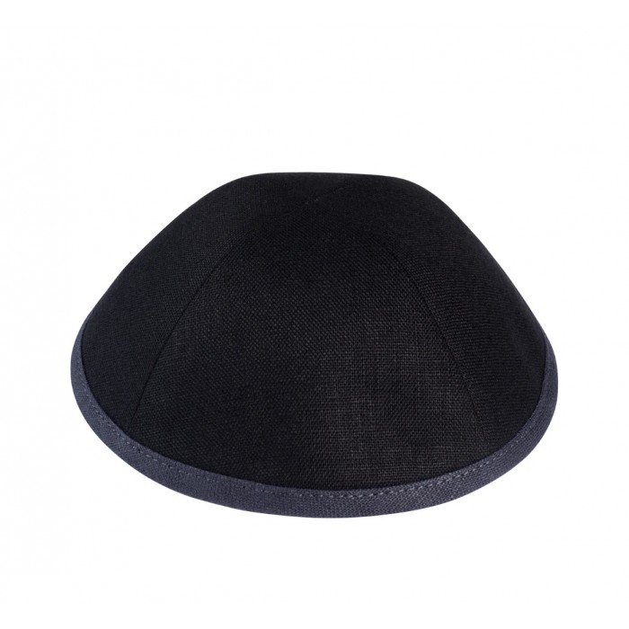 Kippa coton motif carreaux noir et bleu de haute qualité, fabrique IKIPPAH.