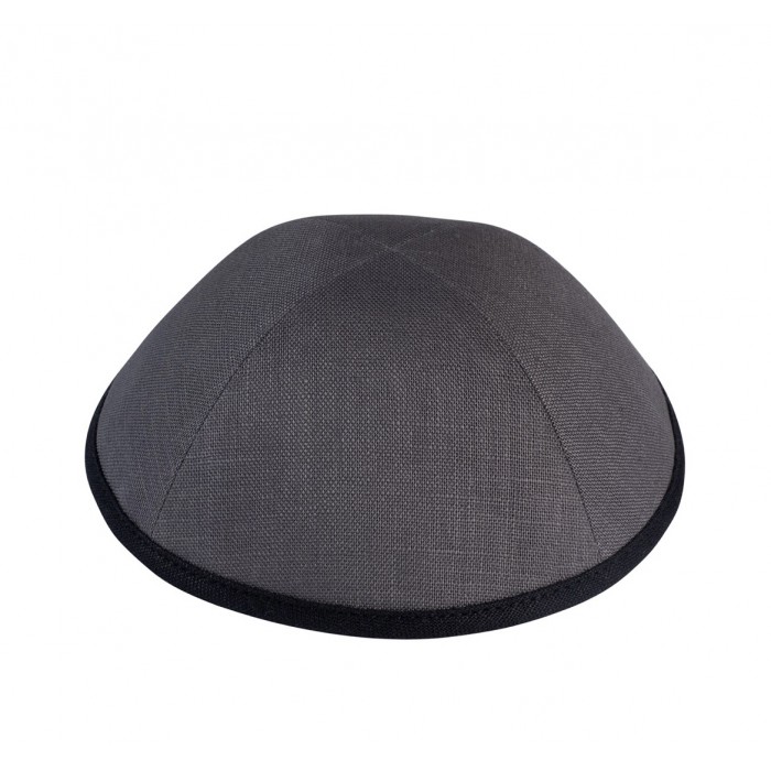 Kippa simili cuir de haute qualité motif alef beth, coloris gris, fabrique IKIPPAH.