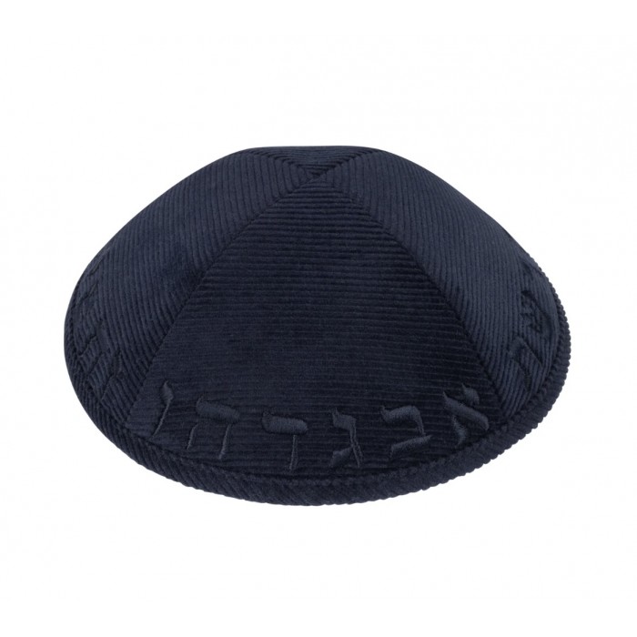 Kippa lin de haute qualité, coloris bleu et liserai ciel, fabrique IKIPPAH.