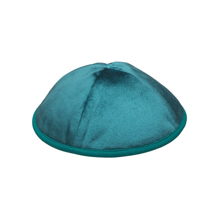 Kippa velours côtelé de haute qualité motif alef beth, coloris bleu, fabrique IKIPPAH.