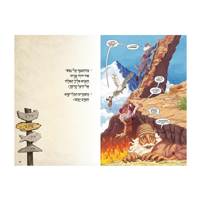 Cette nouvelle bande dessinée reprend la célèbre histoire en 4 chapitres de Jonas que l’on lit à l’occasion Yom Kippour. Il vous emmènera depuis les ports de Jaffa jusqu’aux vastes rues de Ninive, en passant par les profondeurs mystérieuses de la mer où le prophète séjourne trois jours et trois nuits dans le ventre d’un grand poisson. Découvrez la mission divine confiée à Jonas, sa fuite désespérée, la tempête qui s’abat sur le navire, la repentance spectaculaire des habitants de Ninive et la leçon de compassion que Dieu enseigne à son prophète. L’ouvrage comprend le texte intégral du livre de Jonas. La version hébraïque, insérée au fil du récit, est adaptée à la lecture liturgique de Yom Kippour.