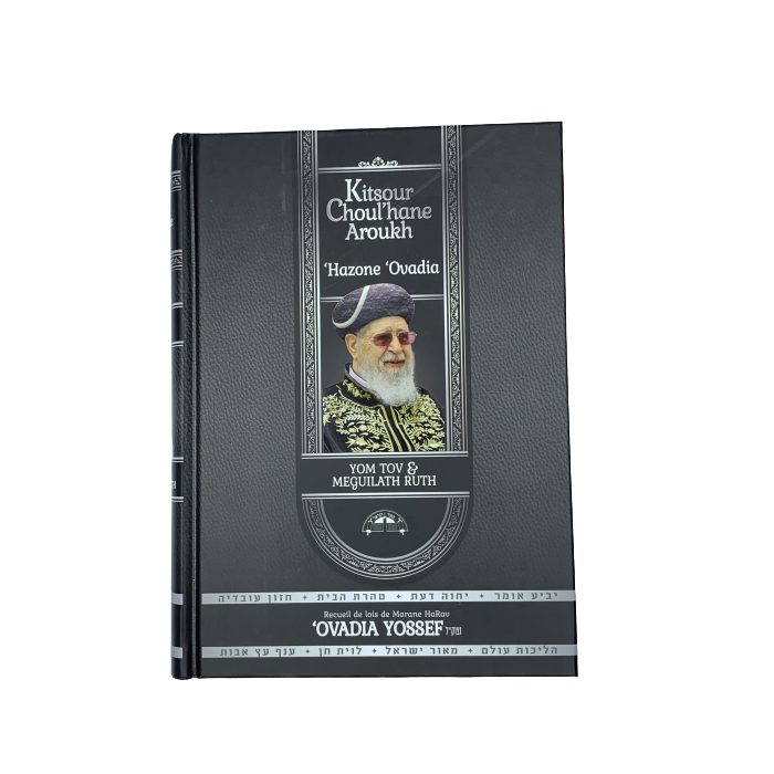 Recueil de lois en hébreu/français du Rav Ovadia Yossef, ancien décisionnaire pour la communauté séfarade d’Israël, sur les jours de fête (Yom Tov), 'hol hamoed, compte du omer, la fête de Chavouot, Roch Hodech, bénédictions sur la lune et la Meguila de Ruth traduite et commentée.