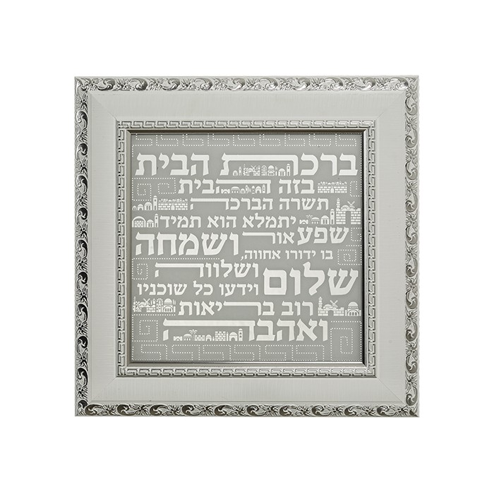 Birkat bayit (bénédictions pour la maison) en bois et verre. Art Judaica.