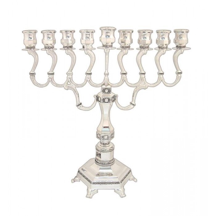 Menorah cristal, base et mur avec plaque aluminium, hauteur 19cm, longueur 30cm.