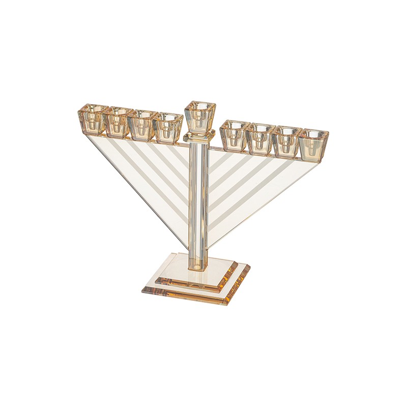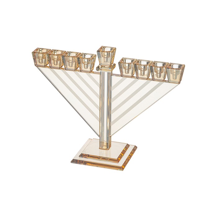 Menorah cristal, base et mur avec plaque aluminium, hauteur 19cm, longueur 30cm.