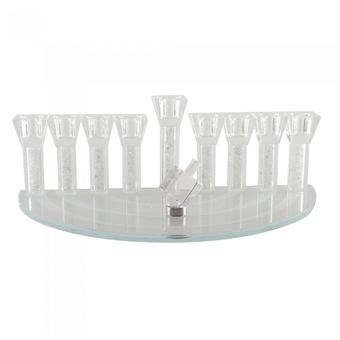 Menorah cristal, base et mur avec plaque aluminium, hauteur 19cm, longueur 30cm.