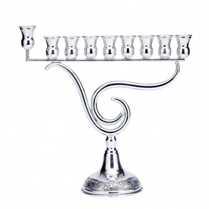 Menorah cristal, base et mur avec plaque aluminium, hauteur 19cm, longueur 30cm.