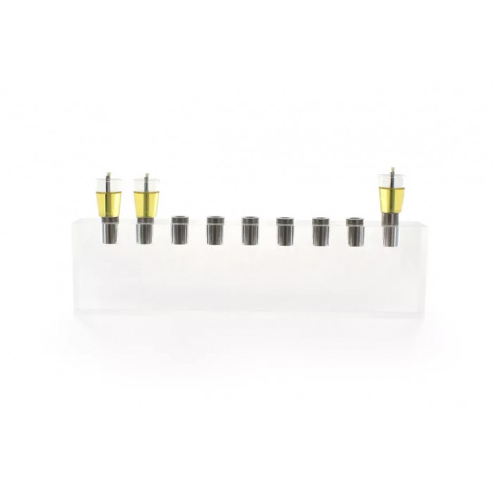 Cette superbe Menorah en plexiglass est un magnifique incontournable de Hanouka et ferait une belle pièce maîtresse. Pesant 1550 g et 4 mm d'épaisseur, cette menorah solide peut être utilisée avec des huiles et des bougies. Chaque bougeoir peut être retiré individuellement pour le nettoyage et vous permet de déplacer le shamash dans différentes positions.
