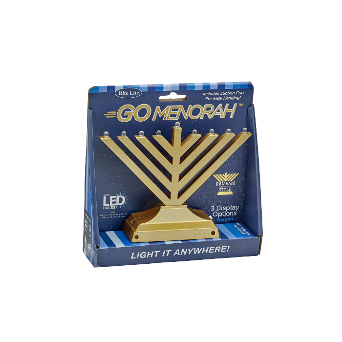 Où que vous alliez, quoi que vous fassiez, emportez ce mignon "GoMénorah" avec vous ! Le design "Rambam" distingue cette Menorah des autres. Alimentez-le avec des piles ou un micro-USB pour une commodité et une facilité d'utilisation ultimes. En plus de l'éclairage séquentiel, cette Menorah propose de multiples effets d'éclairage qui créeront l'ambiance pour l'expérience ultime de Hanoukah où que vous soyez !