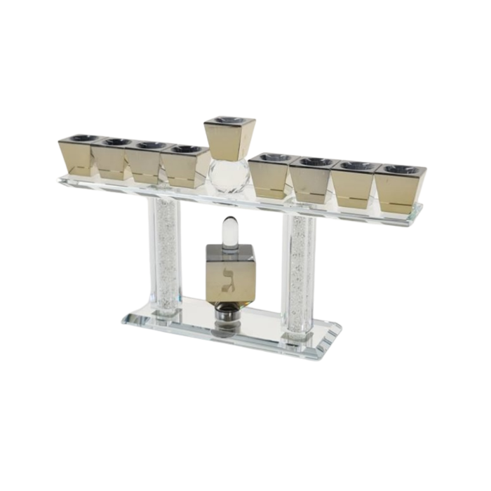 Menorah cristal transparente et argent, longueur 27cm, hauteur 16cm