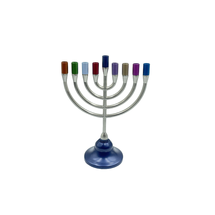 Menorah cristal, base et mur avec plaque aluminium, hauteur 19cm, longueur 30cm.