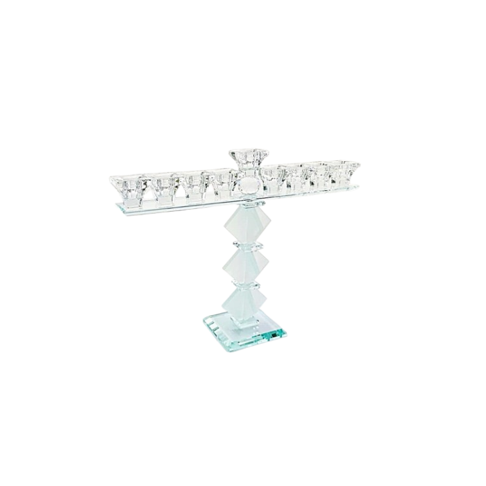 Menorah cristal, base et mur avec plaque aluminium, hauteur 19cm, longueur 30cm.