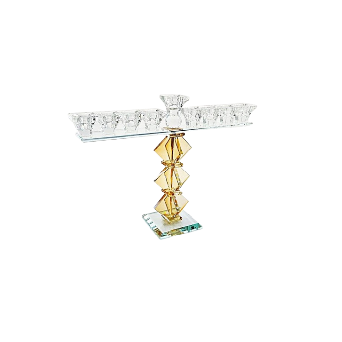 Menorah métal design coloris argent godets tons bleu, hauteur 22cm, Emanuel