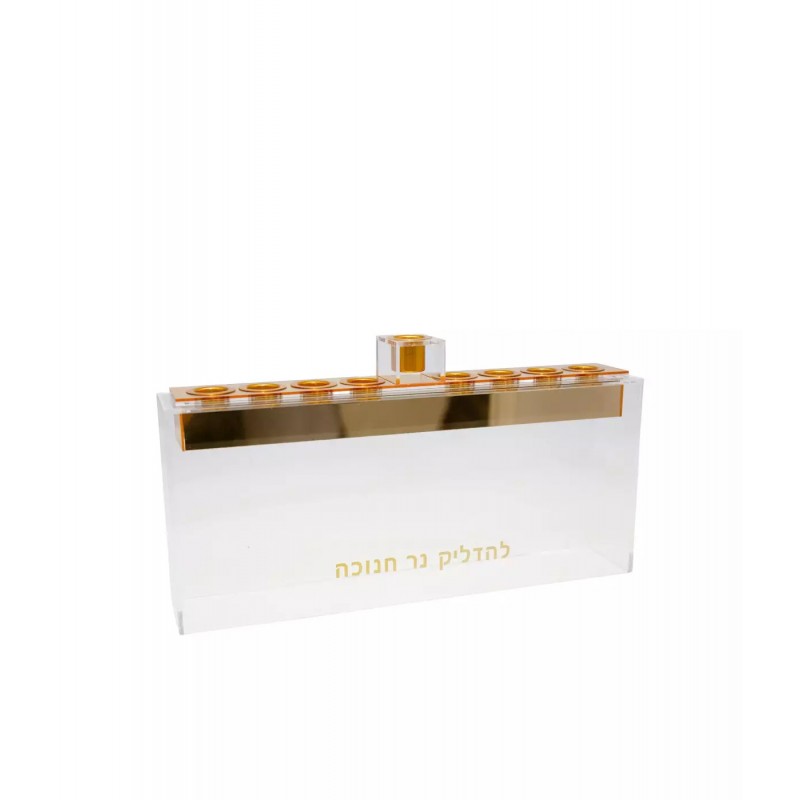 Menorah cristal, base et mur avec plaque aluminium, hauteur 19cm, longueur 30cm.