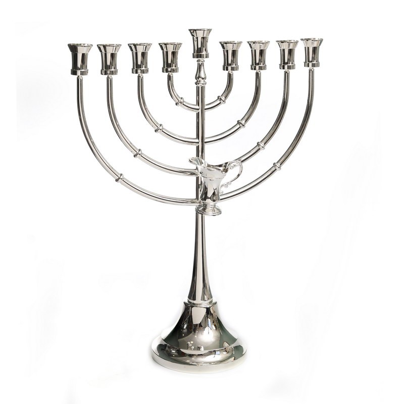 Menorah métal design coloris argent godets tons bleu, hauteur 22cm, Emanuel