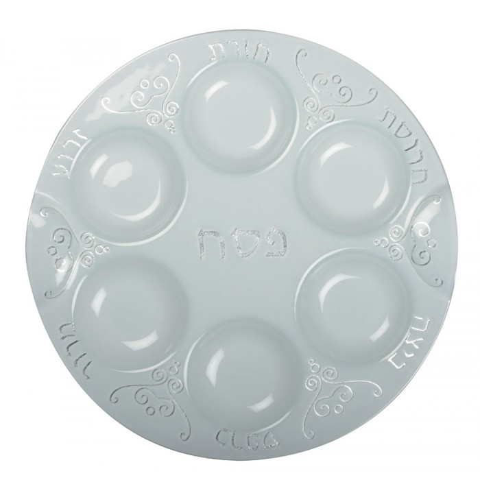 Plateau du seder de Pessah design, coloris argent, plexi. Feldart.