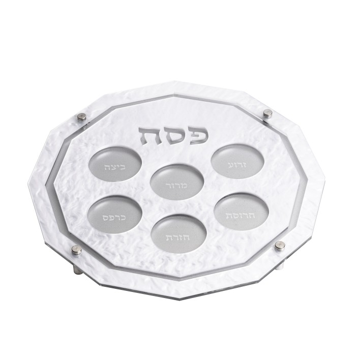 Plateau de seder melamine, blanc marbré or, Art Judaica