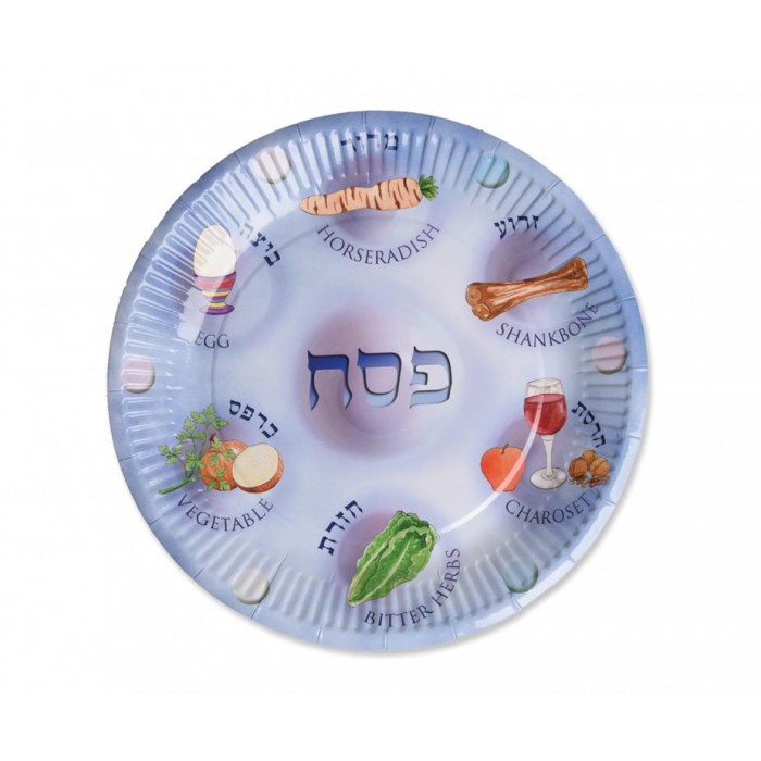 Grand plateau du Seder de Pessah en métal sur pied. Art Judaica.
