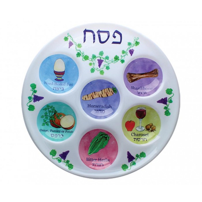 Plateau du seder de Pessah design, coloris blanc nacré, plexi. Feldart.
