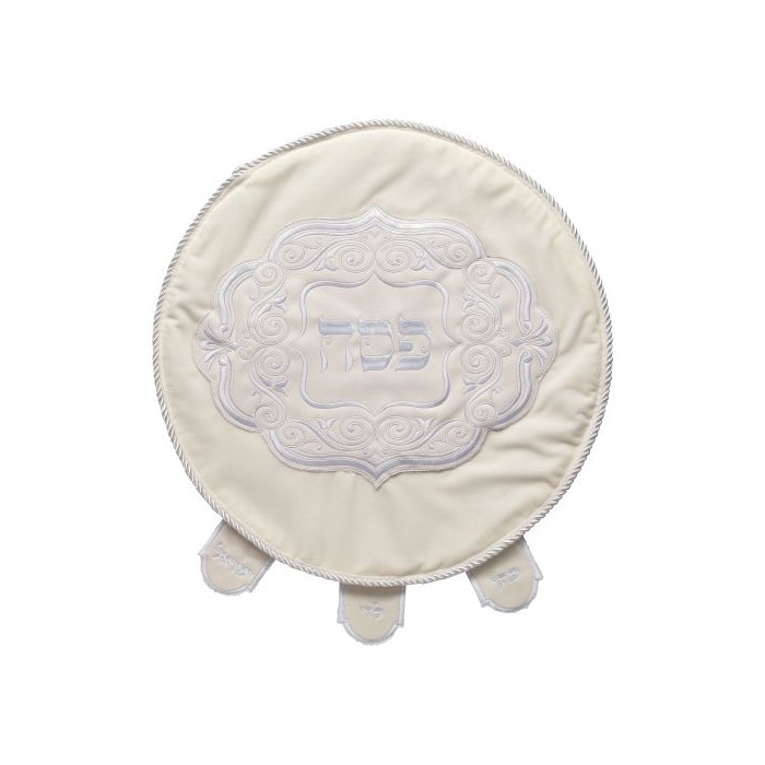 Un napperon velours couleur blanc pour matsot simple et sobre très joliment brodé. Diamètre 45cm.