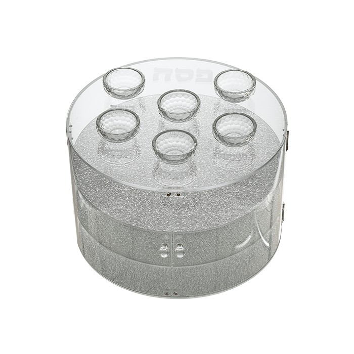 Coffret du seder de Pessah design, coloris blanc et argent, plexi. Art Judaica