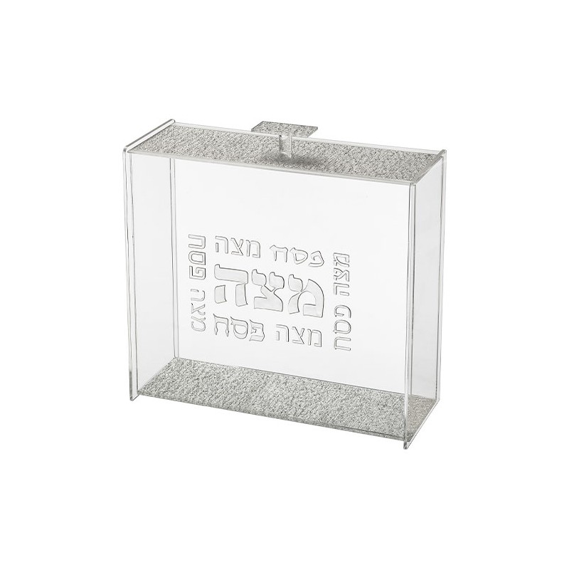 Boite à matsa forme carrée, coloris argent pailleté, plexi, Art Judaica