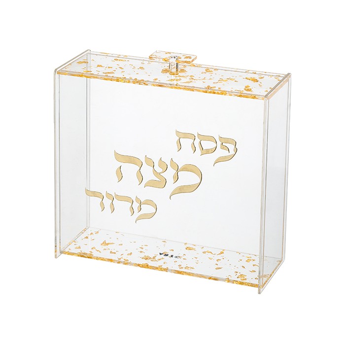 Coffret du seder de Pessah design, coloris blanc et argent, plexi. Art Judaica