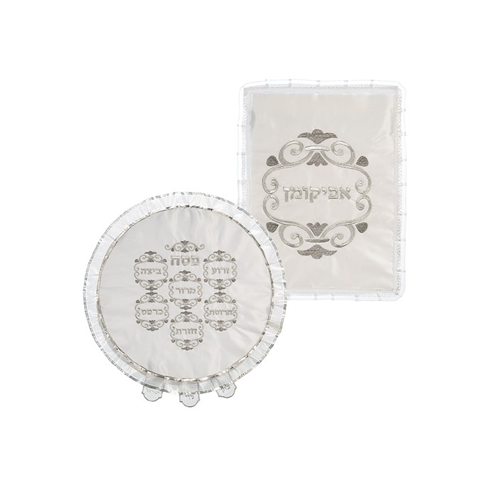 Grand plateau du seder en verre, coloris blanc et bleu, diamètre 30cm