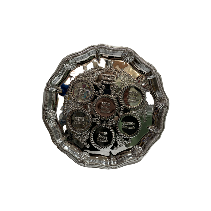 Plateau de seder melamine, blanc marbré or, Art Judaica