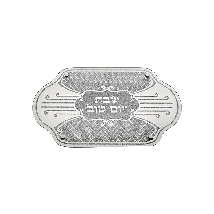 Planche à pain pour Chabbat en verre, dimensions 25*37cm. Motif marbré blanc et gris.
