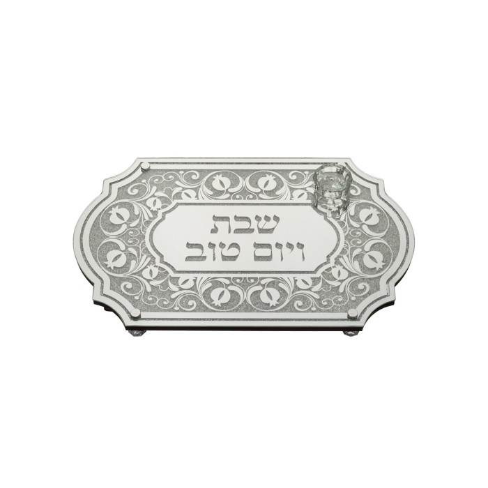 Planche à pain pour Chabbat en verre, dimensions 25*37cm. Motif marbré blanc et gris.