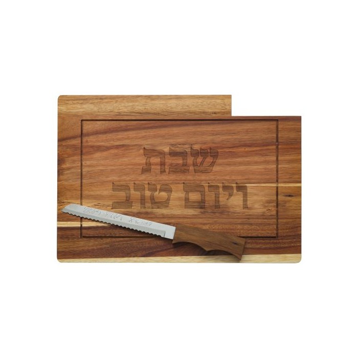 Planche à pain en bois de Chabbat, bandeau Chabbat Veyom Tov