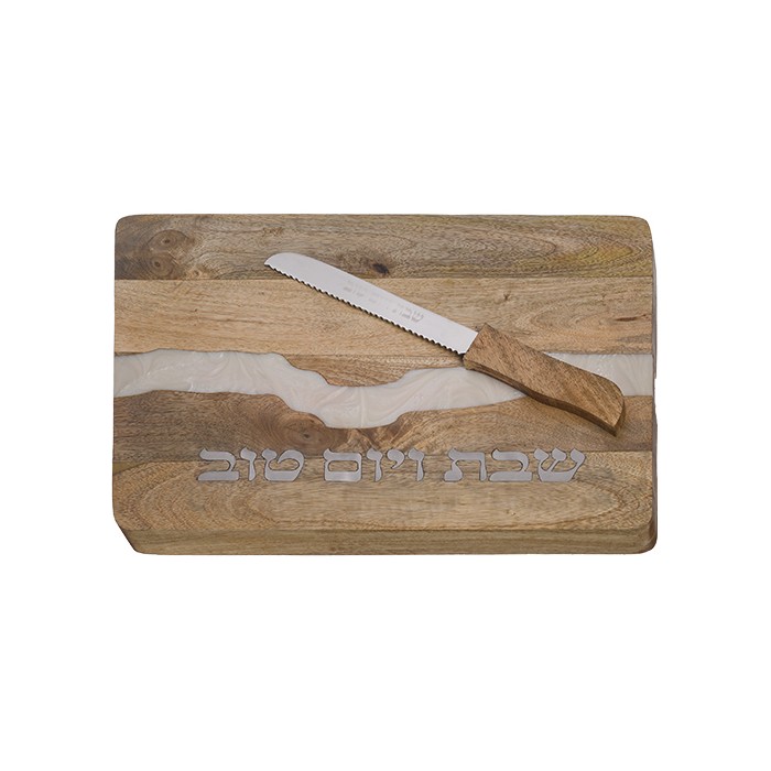 Planche à pain en bois de Chabbat, bande plexi turquoise.