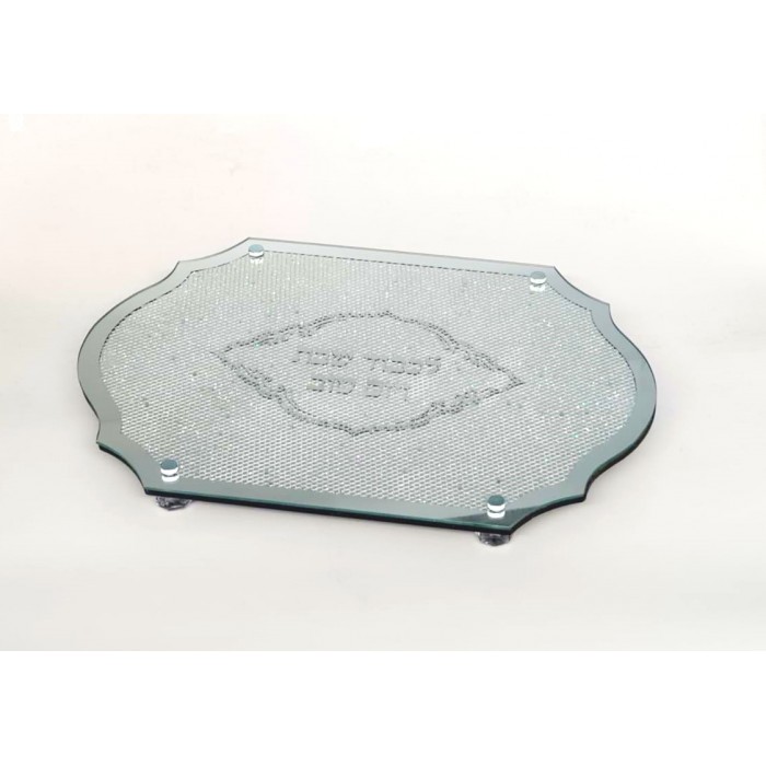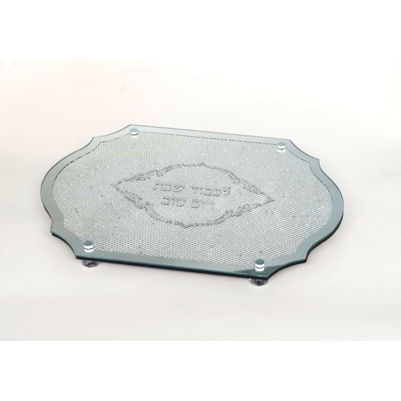 Plateau à pain en verre pour Chabbat et fêtes juives, dimensions 43*30cm.
