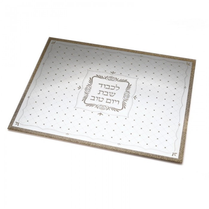 Planche à pain pour Chabbat en verre, dimensions 25*37cm. Motif marbré blanc et gris.