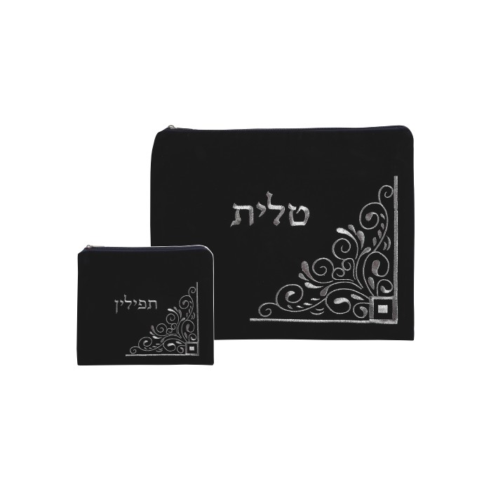 Set pochettes talit et tefilines cuir véritable, couleur noir et gris, IMPALA.