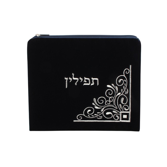 Ensemble de pochettes de talit et tefilines coloris noir en PVC.