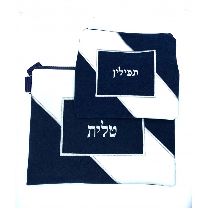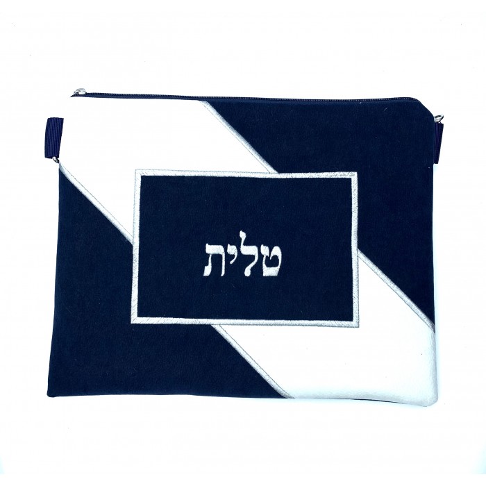 Pochette de tefilines (Rachi), couleur noir et blanc cassé, motif bande diagonale, Impala