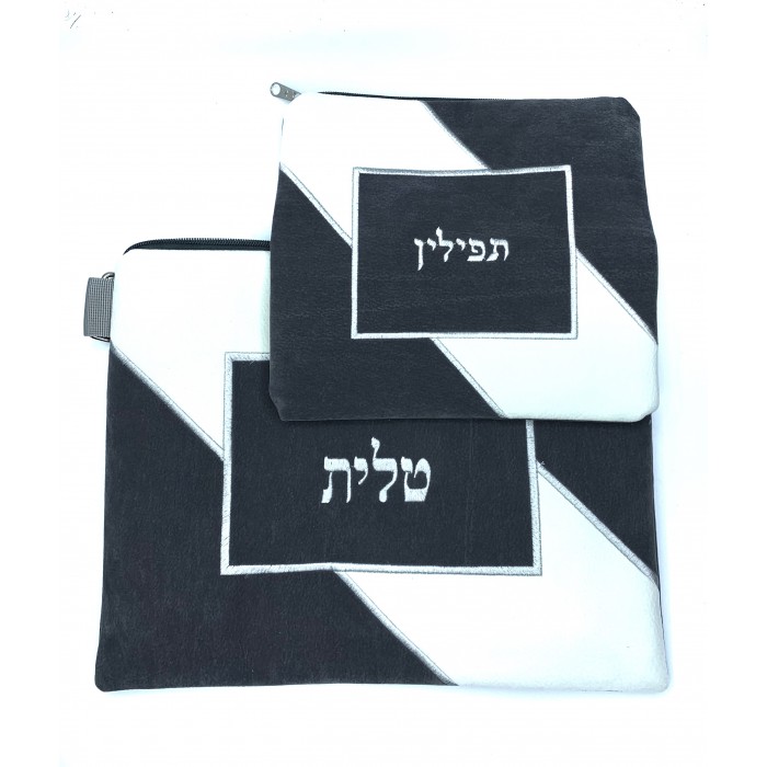Set Talit et Tefilines, couleurs gris et blanc cassé, Impala.