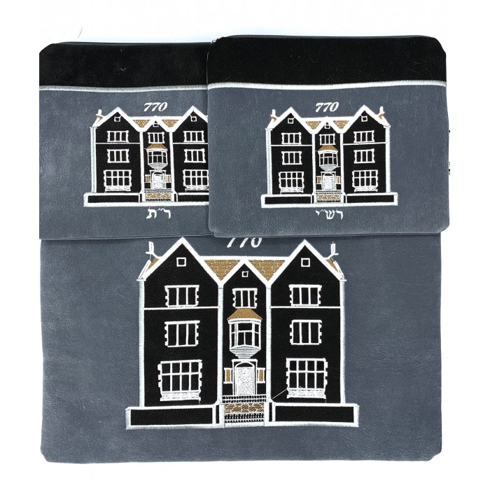 Set pochettes talit et tefilines cuir véritable, couleur noir broderie "Haech Cheli". Judaica Leather