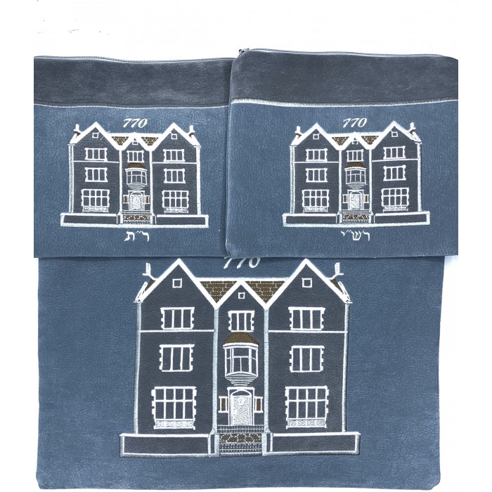 Set talit et tefilines simili cuir apparence lin coloris gris
