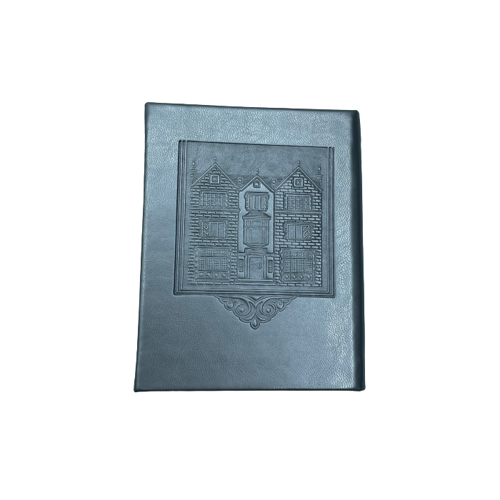 Set de deux petites pochettes de tefilines (Rachi et Rabenou Tam), couleurs bleu et gris motif 770, cuir véritable. Impala
