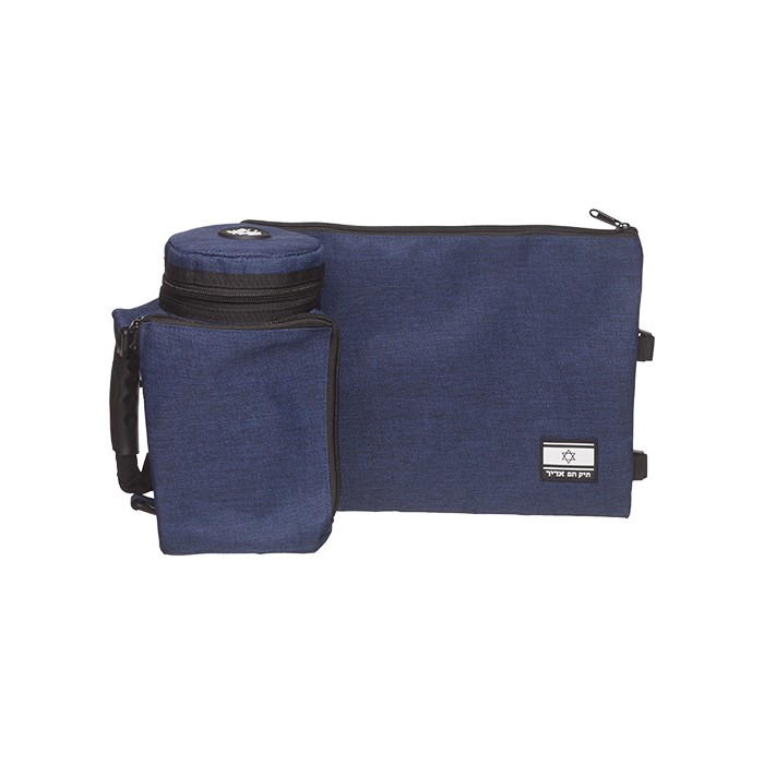 Set pochettes talit et tefilines (Rachi et Rabenou Tam), couleurs bleu et gris, motif 770, Impala